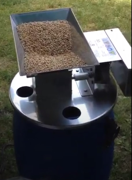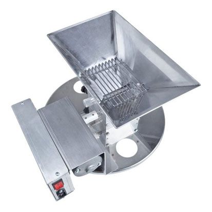 Electric mill for grinding stainless steel malt with aluminum rollers.